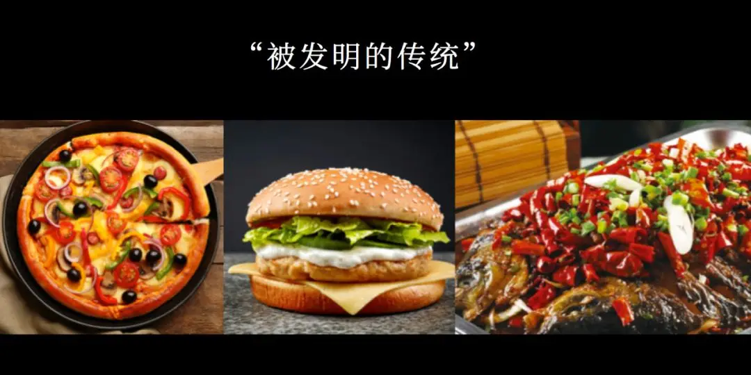 看一下川菜、云贵菜、湖北菜、湘菜,还有排在后面的这几个,像台湾菜、江西菜。江西菜有瓦罐煨汤,台湾菜有手抓饼,东北菜有饺子馆,新疆菜、西北菜有拉面。我们把这些排除,为什么要排除?因为这些不是用来会餐的菜,是不能够成席的。我们把这几种菜肴排掉之后,排名靠后的全部都是有辣的。你要一起吃饭,基本上就要吃点辣的东西,它相对而言比较便宜。移民到城市里以后怎么样呢?有几个线索,第一个是他脱离了原来的情境。费孝通先生很有名的那本书《乡土中国》,讲到中国本来是一个乡土社会。后来怎么样呢?我们这三十年离乡离土,我们把根都丢掉了,连根拔起,走到城市里面来。那出现了什么样的情况呢?我们原来的人缘,我们所依赖的这种宗族的、亲戚的关系都没有了。这本来对我们非常重要,我们原本是生活在联结里面的人,现在到了大城市,联结都断掉了。这时候我们需要怎么样?我们需要社交,我们需要跟人建立联系。我们中国人说要跟人建立联系,你要是说我跟他没吃过饭,这是很说不过去的。欧洲人建立人际关系要去喝酒,去酒吧建立关系。而中国人是靠吃饭建立关系,所以吃饭很重要,吃饭的时候产生共情,产生了一种情感上的联接。辣味菜肴是相对便宜的,也是移民能够消费得起的食物。因为移民刚到城市,也有这样的社交需求。这时候有一种东西叫做“被发明的传统”,比如汉堡包、披萨。本来披萨这种食物在意大利是没有的,现在意大利人为了要迎合这些移民,也搞了很多披萨,但其实披萨原本是美国人发明出来的。汉堡包也是,虽然它叫“汉堡”包,但是它并不是在德国汉堡发明的,就是一个附会的东西。