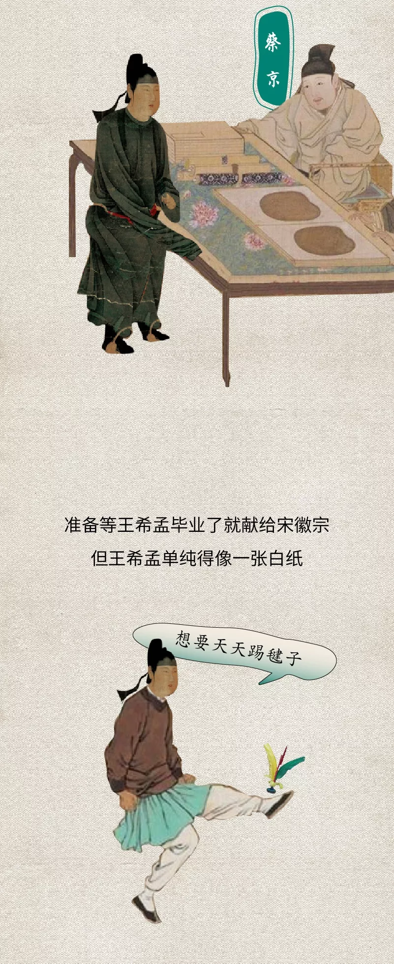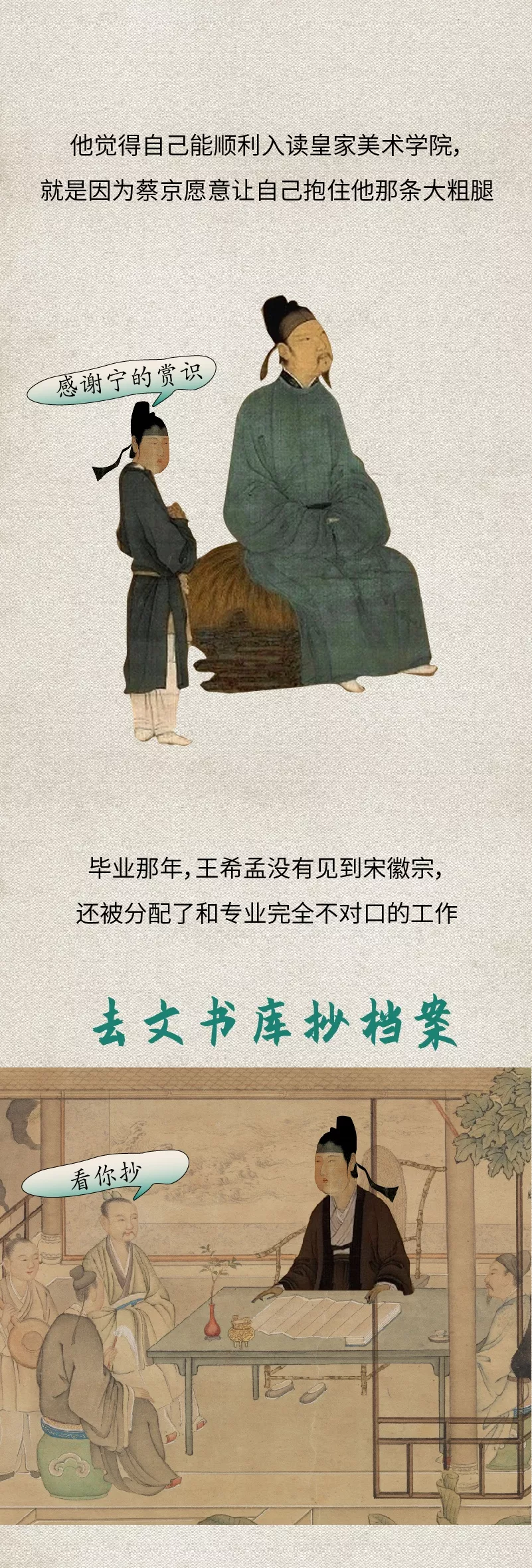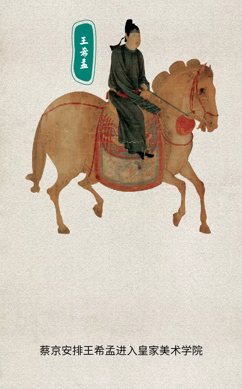 王希孟,北宋(1096 -?)时人,工山水,作品罕见;可以称得上中国绘画引史上仅有的以一张画而名垂千古的天才少年。然而史书中没有他的记载。王希孟十多岁入宫中"画学"为生徒,初未甚工,宋徽宗赵佶时系图画院学生,后召入禁中文书库,曾奉事徽宗左右,但宋徽宗慧眼独具,认为:"其性可教",于是亲授其法,经赵佶亲授指点笔墨技法,艺精进,画遂超越矩度;徽宗政和三年(1113)四月,王希孟用了半年时间终于绘成名垂千古之鸿篇杰作《千里江山图》卷,时年仅十八岁,此外再没有关于他的记述,不久就早逝。