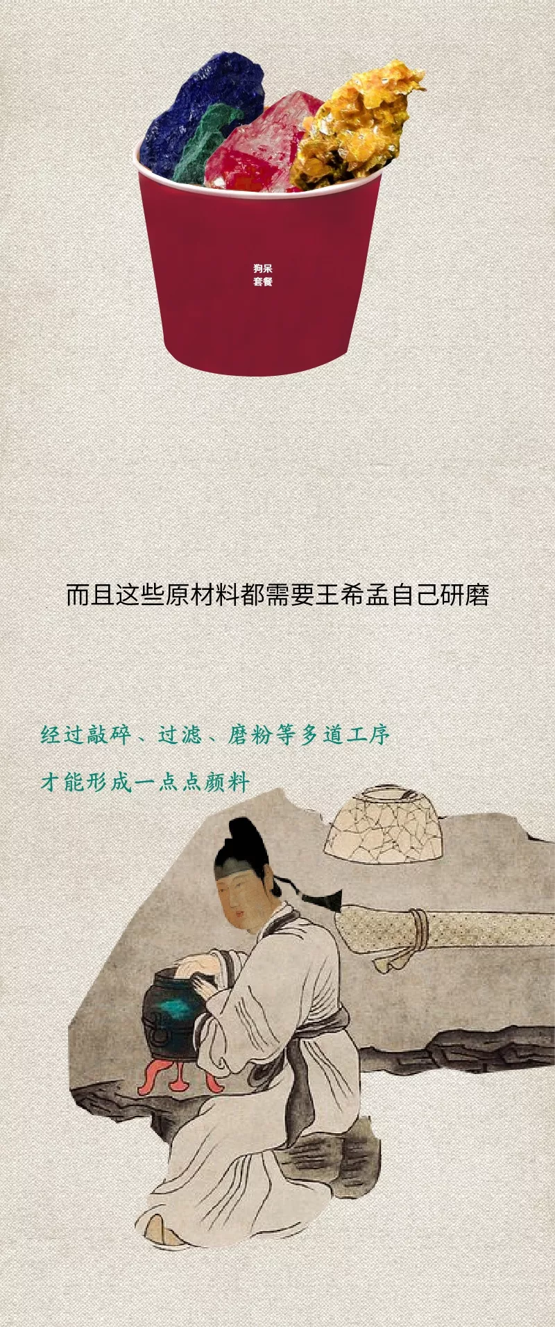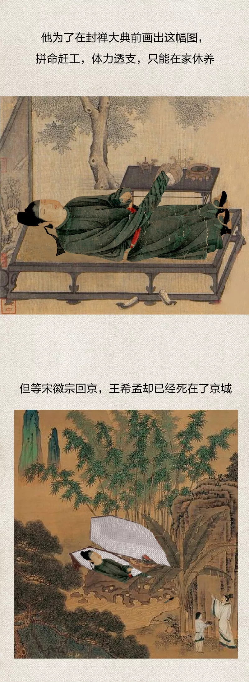 据史料记载,王希孟经赵佶亲授指点笔墨技法[1] ,艺精进,画遂超越矩度。工山水,作品罕见。徽宗政和三年(1113)四月,王希孟用了半年时间终于绘成名垂千古之鸿篇杰作《千里江山图》卷,时年仅十八岁,此外再没有关于他的记述 王希孟传世之唯一作品《千里江山图》[2]