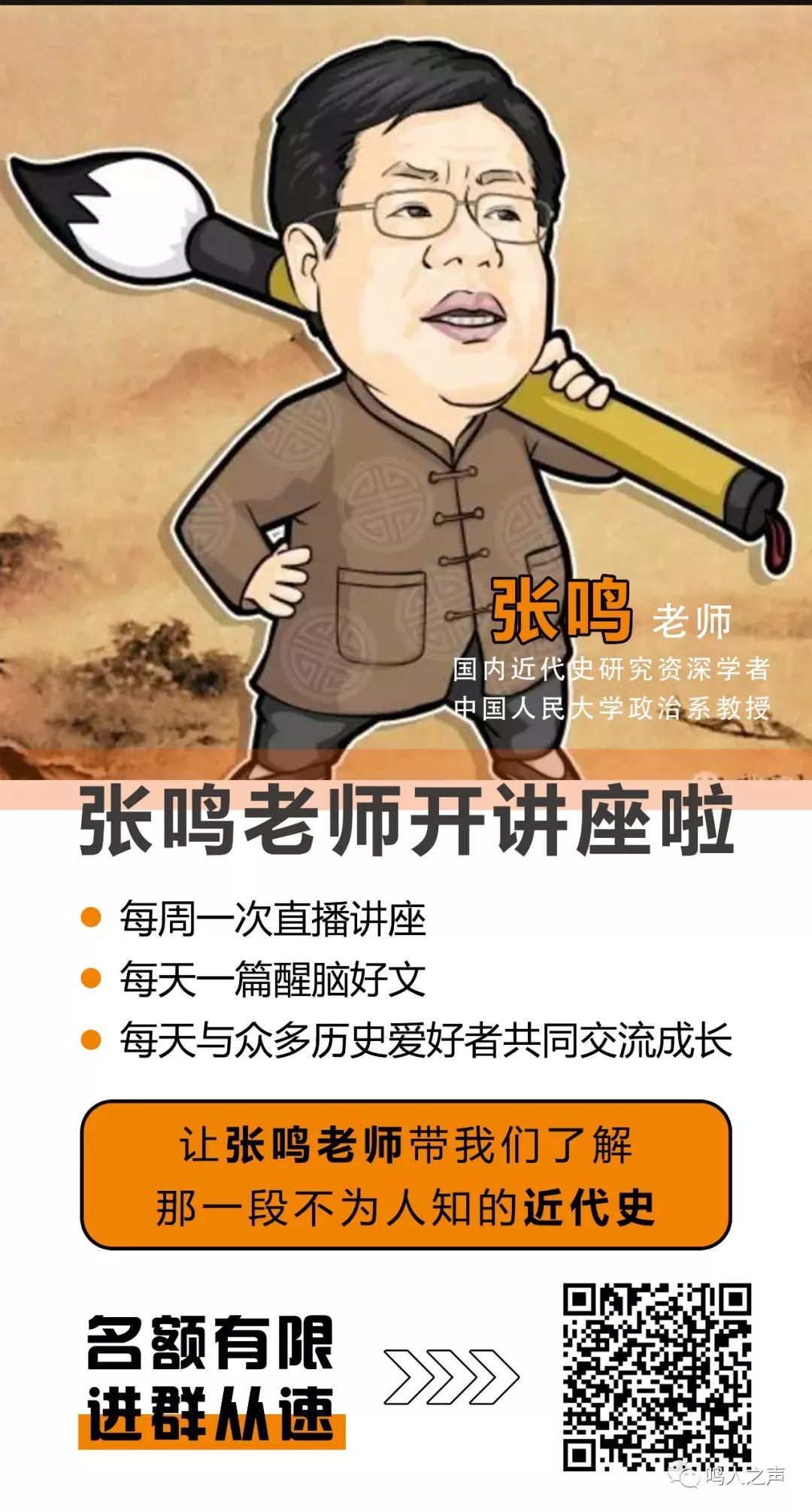 可扫描以下读书群二维码加入张鸣读书会 听听张鸣的晚清民国史系列讲座: