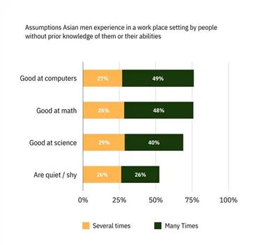 如上图所示,2015年《亚裔美国男性研究》发现, 75%的亚裔男性被认为是擅长数学,科学和计算机。