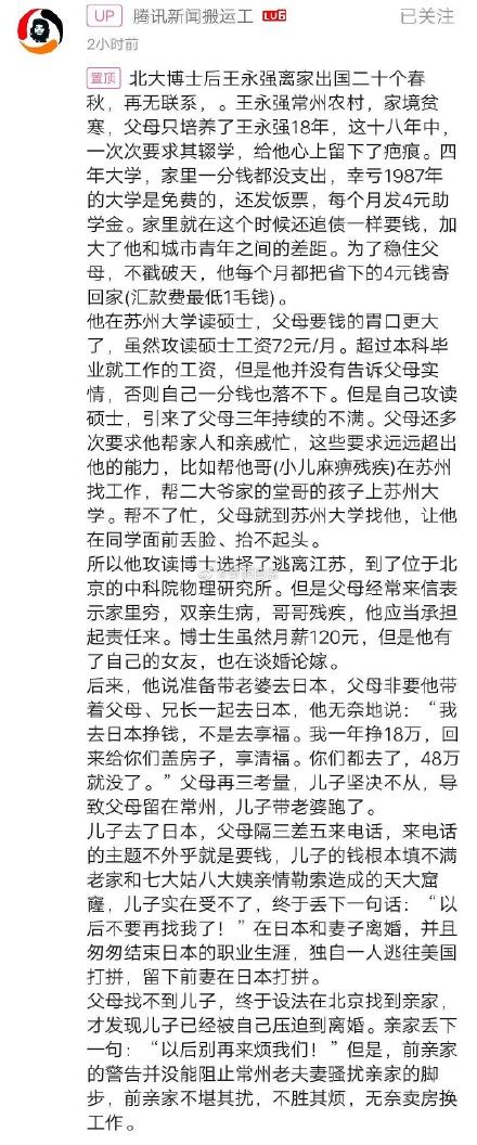 02 前段时间,很多媒体都在报道,北大博士后赴美失联二十年,母亲临死前想见一面,竟遭拒绝,只留下一句:勿扰。