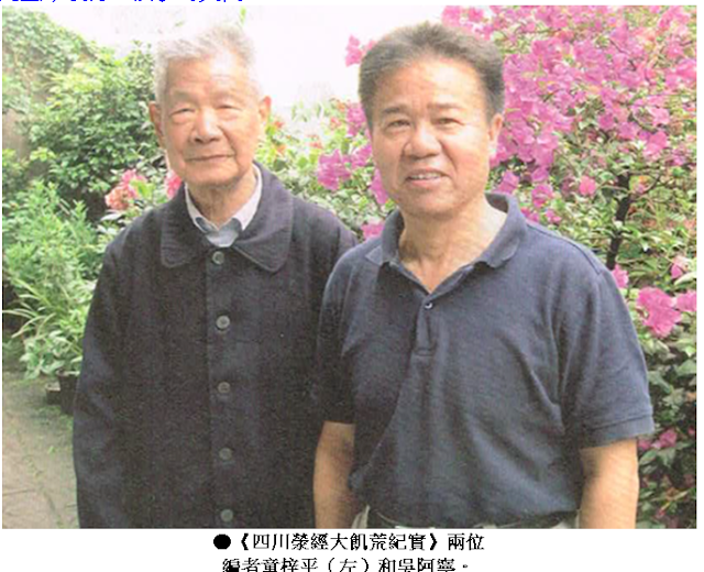 四川省是全国大饥荒饿死人之冠:一千二百万。荥经县又是四川之冠:九万人饿死五万!而且普遍的人吃人、吃尸体,完全是一个人间地狱。这样严重的事件,中共当局至今没有一个字的交代。 日前四川几位民间人士撰写编辑出版了《大劫难——一九五九至一九六二年四川荥经县大饥荒纪实》,这本书从历史亲历者的角度还原了四川荥经县一段被中共当局极力掩盖和遗忘的历史惨案真相,最有力地证明了毛泽东的大跃进不但饿死千千万万的农民,而且还在一个非战争年代导致惨绝人寰的人吃人浩劫。 荥经县是四川盆地西缘雅安地区一个人口稀少的农业县,现全县人口十四万。上世纪一九五九年到一九六二年中国因为毛泽东大跃进失败引发的大饥荒,四川为重灾区,饿死人全国第一 。据书中引原四川省政协主席廖伯康在他的回忆录中说,他一九六二年冒险向团中央书记胡耀邦和中央办公厅主任汇报四川死人问题,他对杨尚昆说死了一千二百五十万,但正式向中央报告只敢说一千万。饿死人若按人口比例算,全国应以四川荥经县最惨。当年荥经全县人口九万,饿死的竟然达到五万人左右,已超过该县一半人口,三年中以一九五九年一年死人最多,为三万五千人,即全县四成人口。这段惨痛历史在当地称为“五九大饥荒”或“荥经惨案”,虽然官方讳莫如深,但那些惨烈的真相一直活在当地民间的记忆中。 这本大饥荒纪实的两位编者之一童梓平现年八十六岁,浙江宁海人,中共革命干部,一九四九年由重庆地下党派遣他来到当时尚未“解放”的川西边城荥经县工作。一九五七年被打成右派下放基层,五九年摘帽后派到生产队做包队干部,亲历了那段饿殍遍野的悲惨岁月。另一位编者吴阿宁是荥经县一位文化工作者,当地民间社团“浅草文学社”的创办人兼其刊物《浅草》的主编。《浅草》近年刊登了很多关于荥经五九惨案的文章。对于“荥经当代史第一大案”,“正史语焉不详”,“形同空白”。两人愤怒质问:“五十年过去,难道几万活活饿死的人命,在史书上就这么不值一字?”因此抢救历史,把真相告诉后人,他们认为是自己作为荥经人义无旁贷的责任。 ●原四川政协主席廖伯康曾向杨尚昆反映四川饿死1250 万人。当时中央周恩来、邓小平都极力掩盖大饥荒灾情。