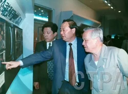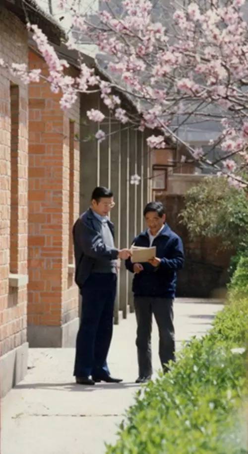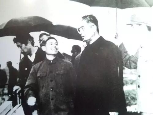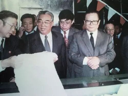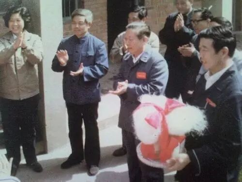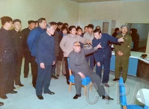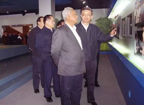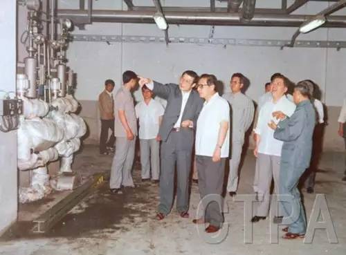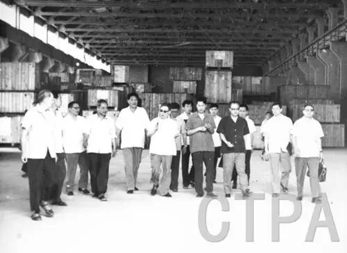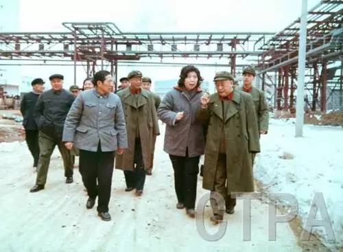 1984年解放军总政治部主任余秋里,空军司令员张廷发视察仪征化纤