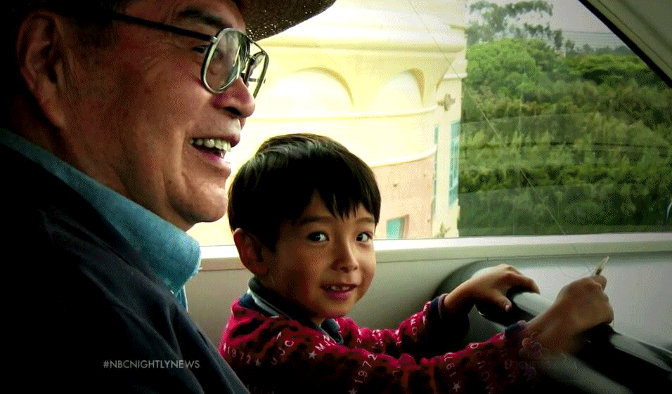 现在每到阳光灿烂的日子, Kenneth就会拉着爷爷的手, 到院子里散散步,哼哼小曲。