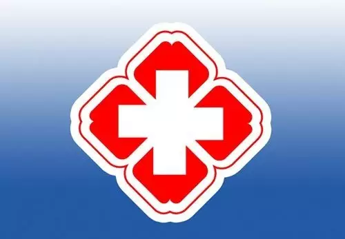 中国医院的十字形标志, 由带着白边的4颗红心围绕着白十字组成。