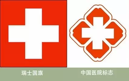 仔细观察,中国医院与瑞士国旗,都是红底白十字,确实很像。