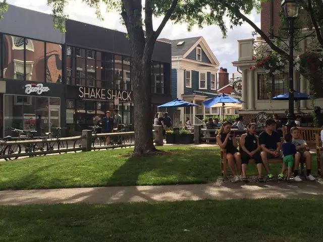 店的位置可谓黄金地段:位于波士顿剑桥镇(马萨诸塞州)哈佛广场。哈佛广场在哈佛大学核心区,汇集多家咖啡馆、餐馆、书店,这是一个生活综合服务区,人气非常旺,当然租金也不菲。