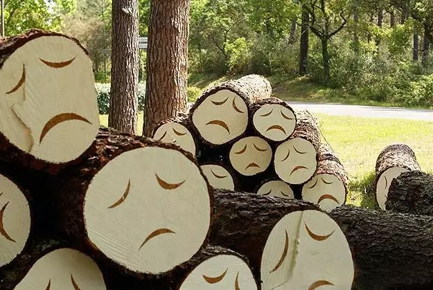 我们人类本应与大自然共存亡,可是只注重发展的我们都对大自然做了什么,每2秒就有一片足球场大的森林被砍伐,每年砍伐生产纸浆的树木面积高达1300万公顷,而我们却在这纸上写着“保护森林”……