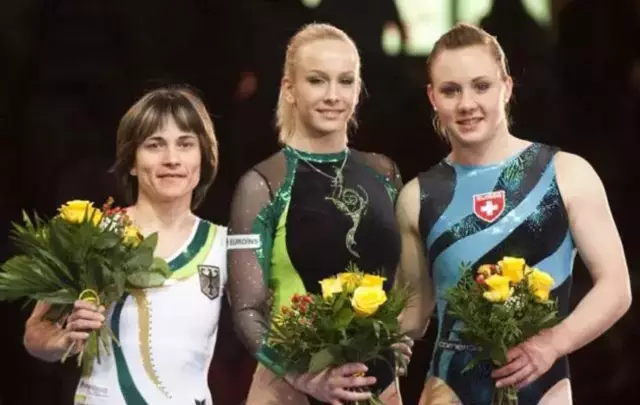 继续征战!2012年体操欧锦赛,再次夺得跳马银牌,跟身边的运动员相比,她不再年轻,但获得了最持久的掌声。