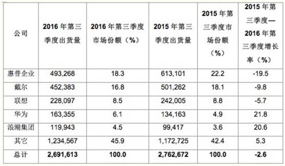 再比如服务器,2016年Q3全球出货前五惠普,戴尔,联想,华为,浪潮,都是中美企业,日本和德国都没有。