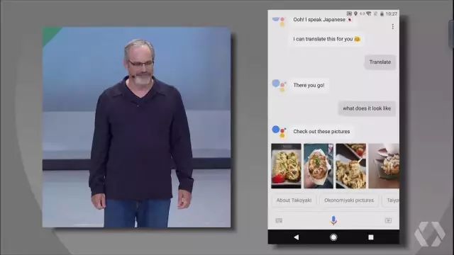 这是一款语音智能助手,简单的说就是谷歌版的Siri。这个功能其实在去年就发布了。只不过之前只支持语音,这次更新后,加上了文字交互功能。 怎么玩?简单的播放歌曲、搜索图片、查询天气、打电话等我们就不再说了。我们讲点有趣的——在日本餐厅,可以让助手将日语菜单翻译成你熟悉的语言。