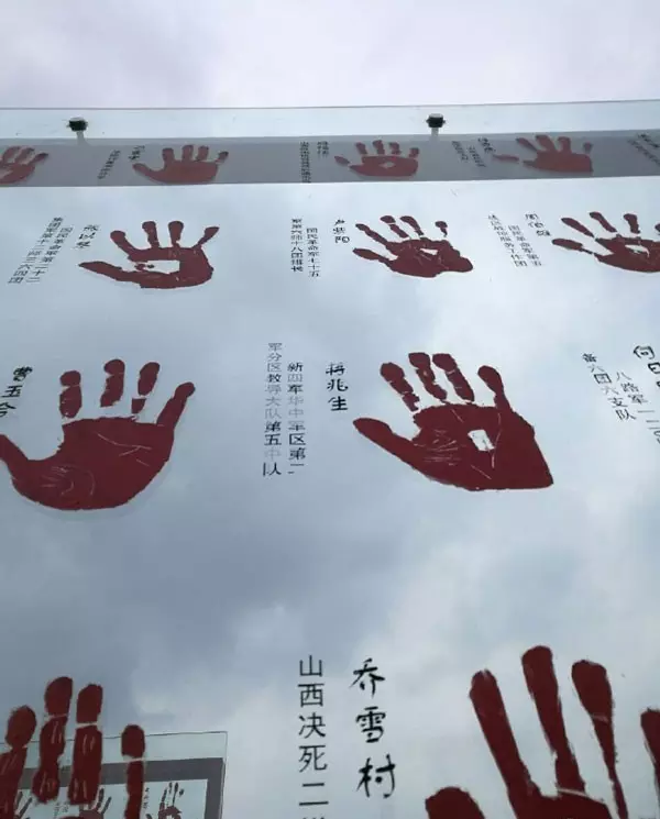 而老兵手印广场更是触动人心, 曾经抠扳机的手、扔手榴弹的手、 挥舞大刀的手, 都在这里留下了珍贵的手印, 每一个鲜红的手印, 都印出了震撼人心的力量。 为取这些手印,他曾跑遍全国, 甚至还多次跑入了太平间。