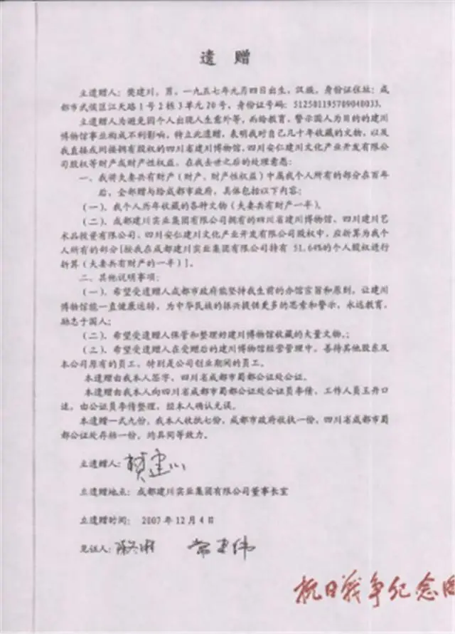 这个穷极他一生财力, 物力与精力建成的博物馆, 他说:要在百年之后全数捐给国家, 他从来没把博物馆, 看作是自己的私有财产, 他说:我是社会财富的暂时看护者, 我只是替国家保存记忆, 这些东西是我私人搜集来的, 但它们更属于这个国家。 2007年,他当众口述了这样一个遗赠, 并转身告诉自己的女儿: 你以后到博物馆也要买票。