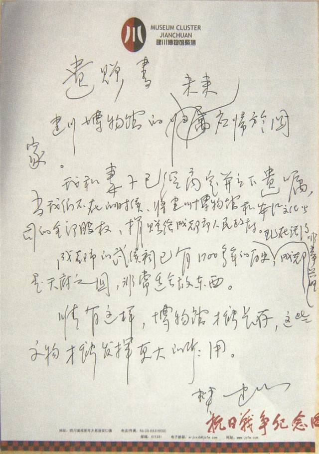 在游客接待中心的墙壁上, 写着他的自白: 为了和平,收藏战争, 为了未来,收藏教训, 为了安宁,收藏灾难, 为了传承,收藏民俗 。