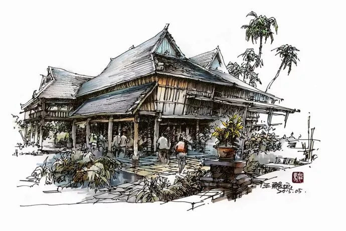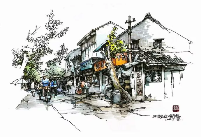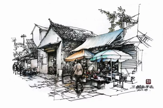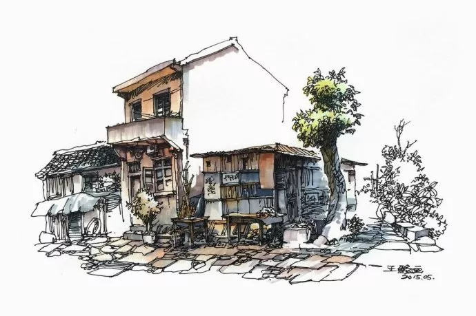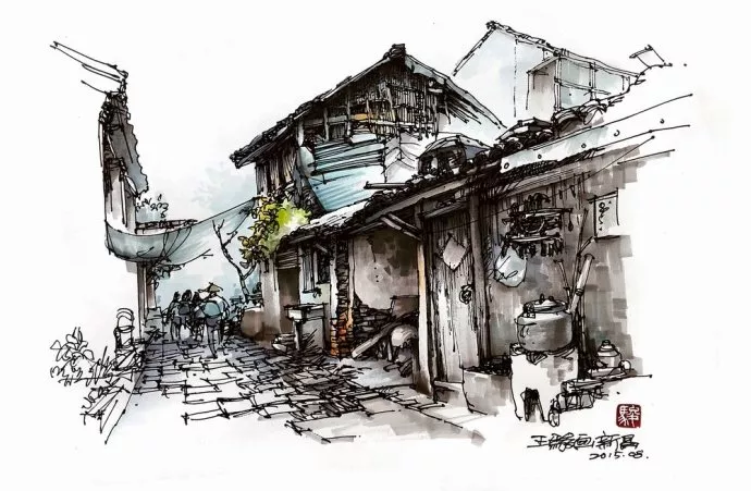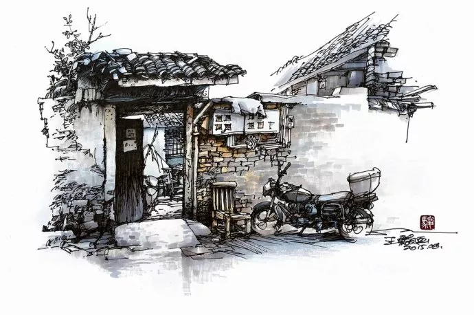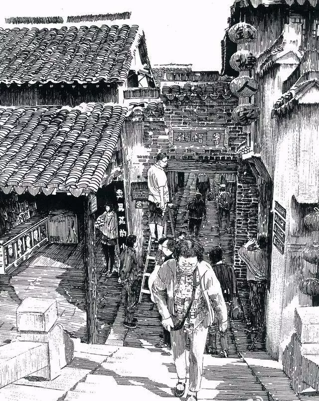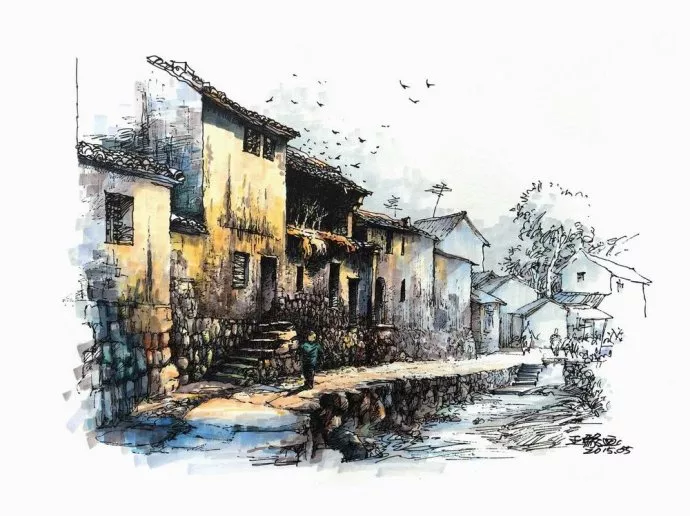 系列作品他近期到 广东沿海和皖南古村落写生采风之后完成的几幅大型钢笔淡彩画力作 都充分表现了钢笔画画种的隽永韵味