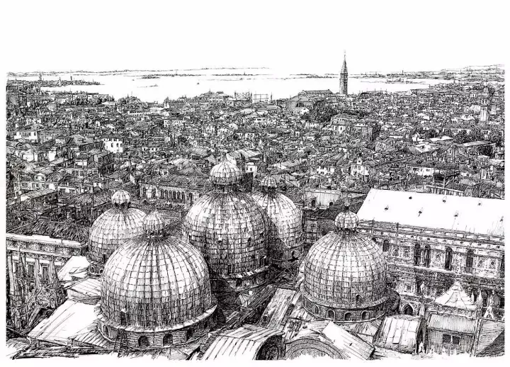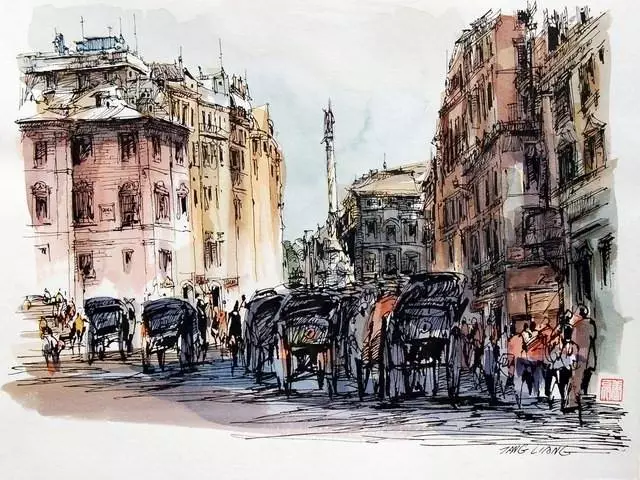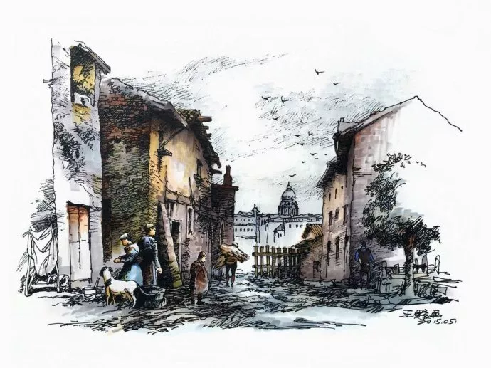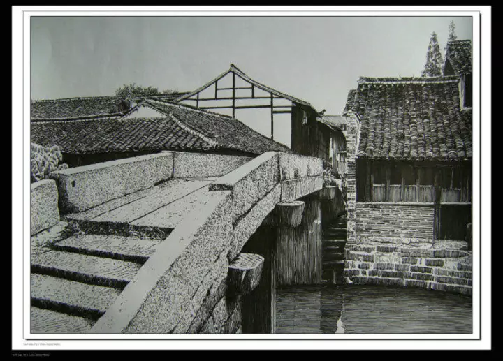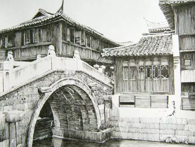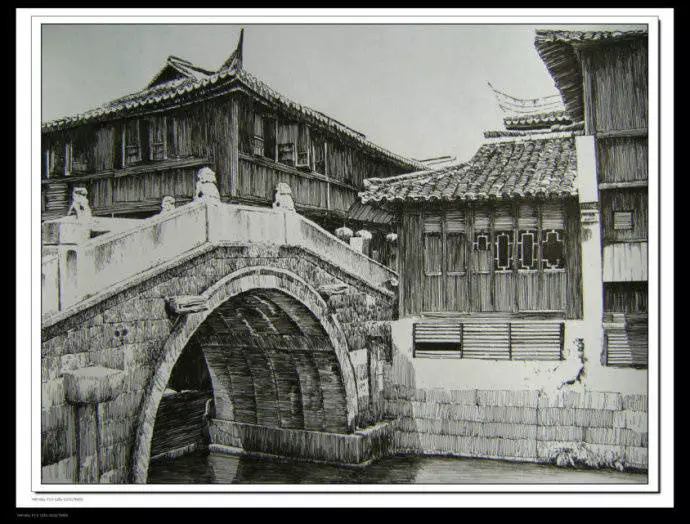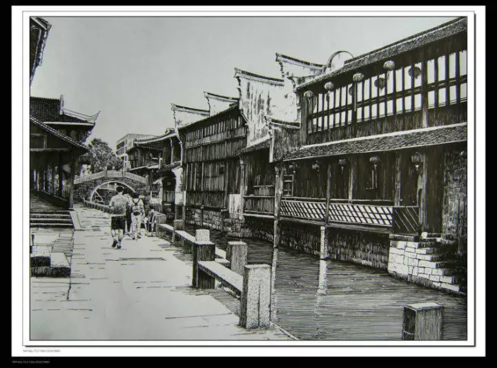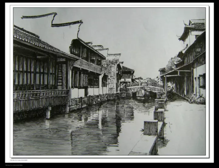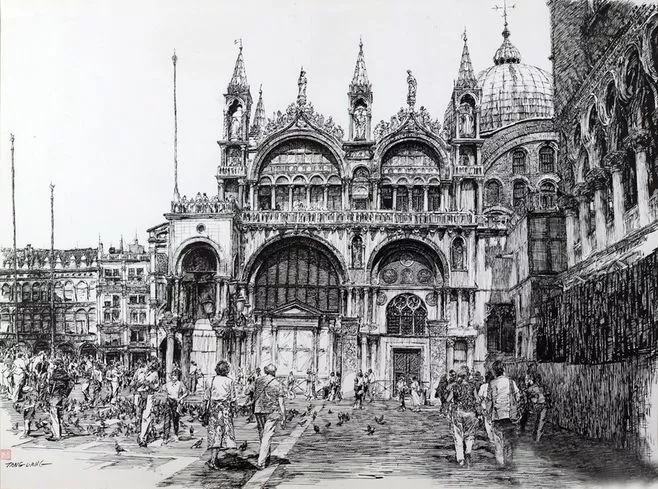 自幼受文艺复兴时期的文学名著影响而迷上钢笔画的王骏,山水与建筑都惟妙惟肖,跃然纸上,生动自然,丝毫没有钢笔线条的生硬感。