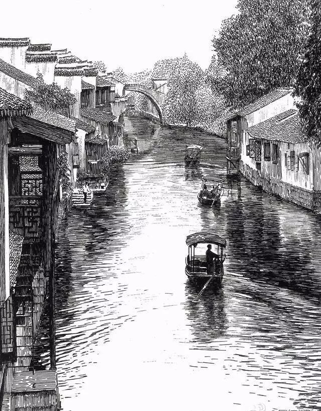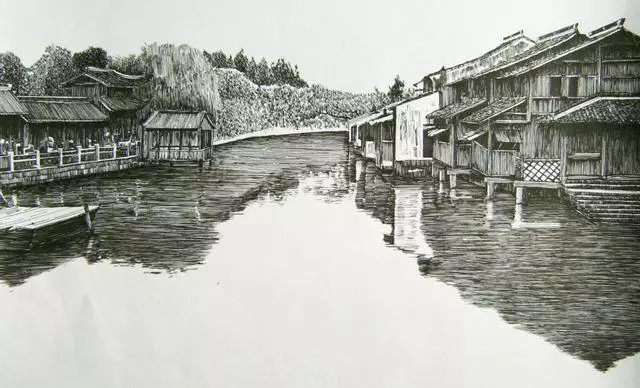 平静的湖水 犹如一面镜子 透过钢笔的塑造 看到了水乡乌镇的自然风光 怎一个美字了得