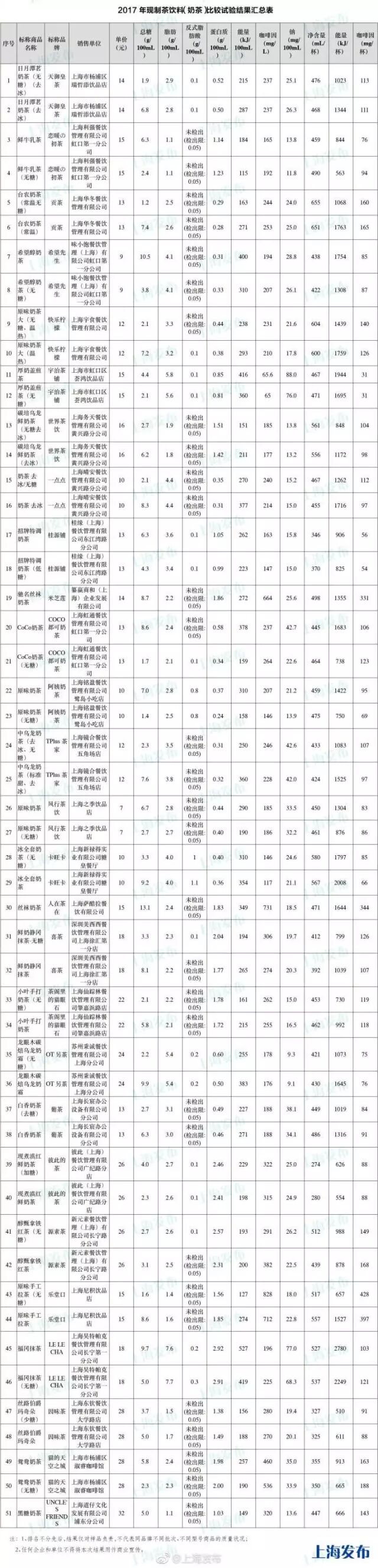 对奶茶中的糖分、脂肪、反式脂肪酸、咖啡因等进行了检测