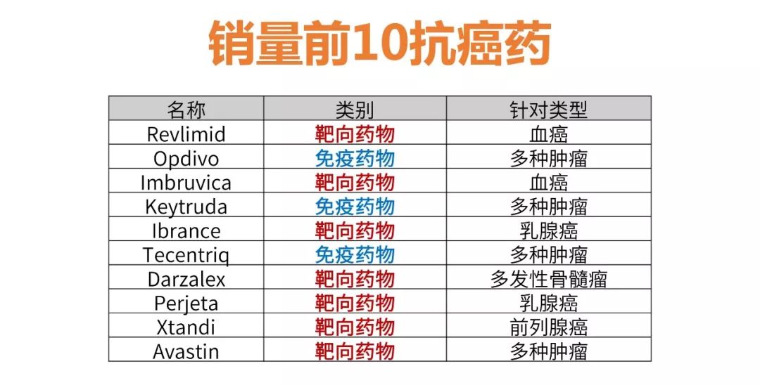 大家看到的是预测的2020年全球销量前十的抗癌药物,全部都是新型的靶向药物和免疫药物。现在我们真的越来越希望能够让更多的患者不用接受化疗,不是因为化疗无效,而是它的副作用太强了。