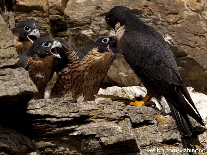 而处于食物链顶级的猛禽游隼妈妈, 在喂食宝宝的瞬间, 有着一低头的温柔, 那绝对,不是几个标本。
