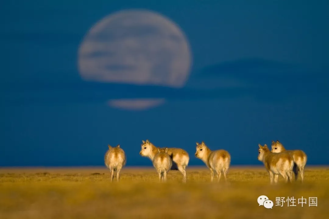 新年月光下的藏羚羊 2010.1 摄影:奚志农