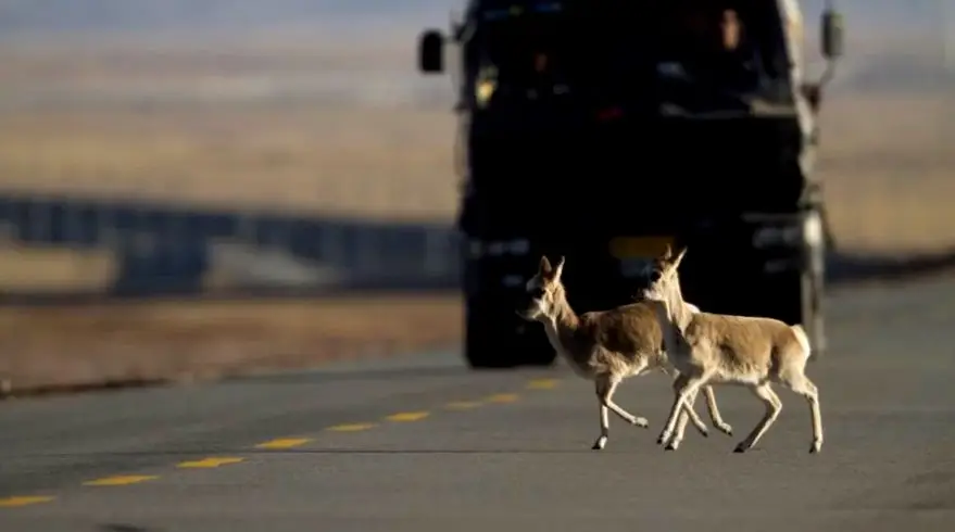 它们穿过青藏公路, 一不留神就会被大卡车撞倒。 而那条公路, 在它们基因流传的记忆里, 是自由奔跑的家园。