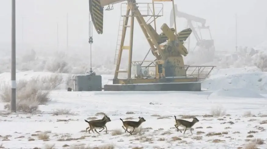《可可西里》电影中盗猎分子枪杀藏羚羊后剥掉羊皮的画面