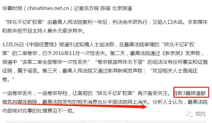 崔永元一句:最高法有贼?将鲜为人知的“陕北千亿矿权案卷宗丢失”事件暴露在公众面前。
