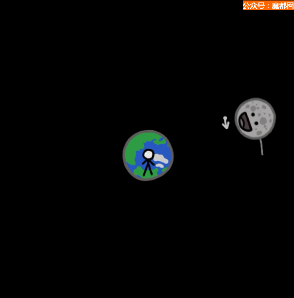 我们在地球上看月亮就变成这样了: