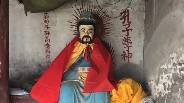 孔子学神。这个孔子皱着眉头,皱纹很深,看来就是操心学生们太多。他手上拿着有一个小盒子,盒子上写着两个字,叫书箱。生怕你看不懂,非常体贴。