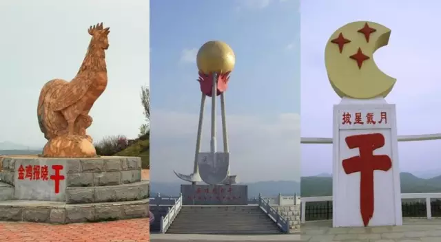 这个“干”字文化广场除了这个“干”以外,脚下还有三个分广场。分广场分别是:金鸡报晓干、头顶烈日干、披星戴月干。