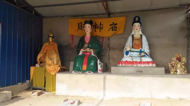 这是据史料记载,海内外唯一一尊女财神。就是因为她手上捧着金元宝,后面写着财神庙。