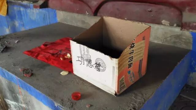 这个功德箱集中代表了奶奶庙的艺术水准。不在乎形式,轻轻一刀,就能做出一个非常飘逸、非常空灵的艺术作品。除了“功德箱”这三个字以外,其他的都是多余,都会对它的艺术成就造成伤害。