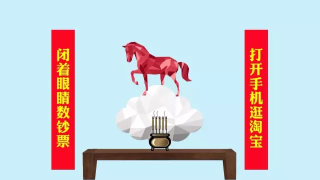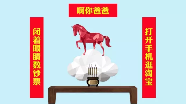 我其实是觉得车神还走得不够远,奶奶庙应该把这个路再往前跨一步,新的时代要有新的内容。我为奶奶庙精心设计了一款财神庙,一匹马踩在一朵云上。有一副对联:打开手机逛淘宝,闭着眼睛数钞票。