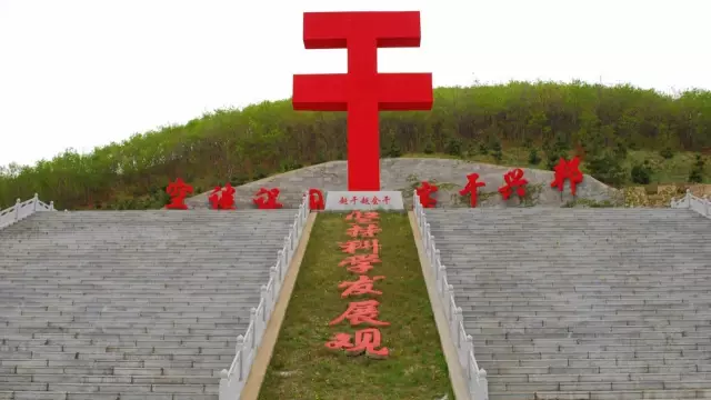 他们很感慨这三十年的经历,所以总结说,我们这三十年靠的是什么?三个词:苦干、实干、巧干。就是一个“干”字把村庄带出来,所以他们修了这么一个广场。这个广场的主体就是大家看到的这个火红的“干”字,高9.9米,号称长长久久。