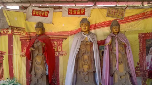 这三尊佛,后面分别是学神菩萨、观音菩萨和生意菩萨。把这仨换一下,它也没问题,多么灵活。