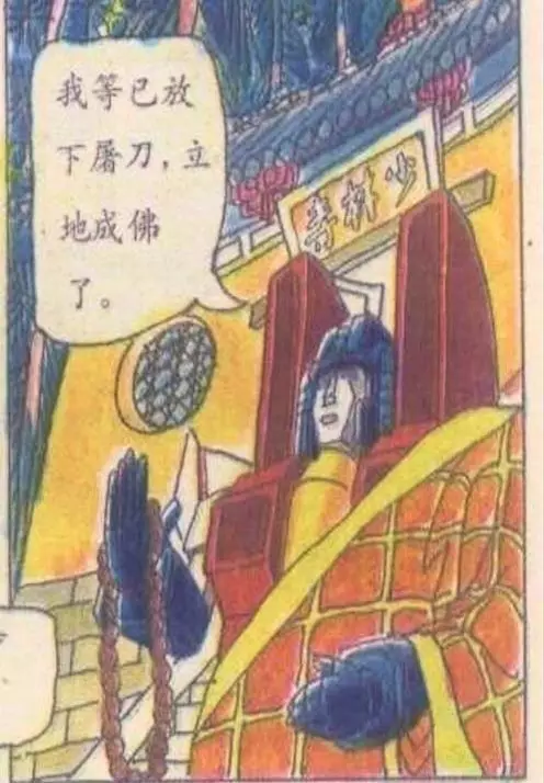 文化碰撞是多么地有趣。这是当年出漫画的时候一张卡牌,我们小时候玩过。这个变形金刚穿上袈裟,手拿手串说:我等已放下屠刀,立地成佛。