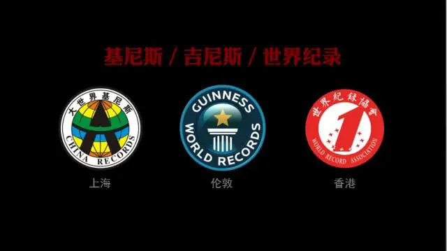 我们一般讲的吉尼斯是中间伦敦的吉尼斯。但是上海的这个和香港的这个,特别是上海的叫基尼斯,大世界基尼斯,香港是世界纪录协会。