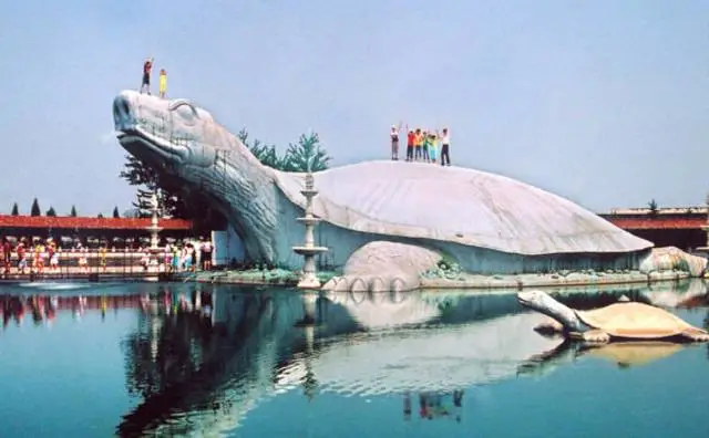这个还原度非常高,修成这样其实还是蛮不简单的。这个房子是全世界最大的王八建筑。大王八有一个兄弟叫大乌龟,这个大乌龟是全世界最大的乌龟建筑。离它也不远,也在河北。