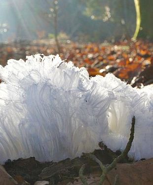 有科学家认为,真菌是形成这种“毛发”的关键。真菌通过自己的方式,将冰变成细小的毛发状,并且抑制它再结晶,从而一直保持丝状。