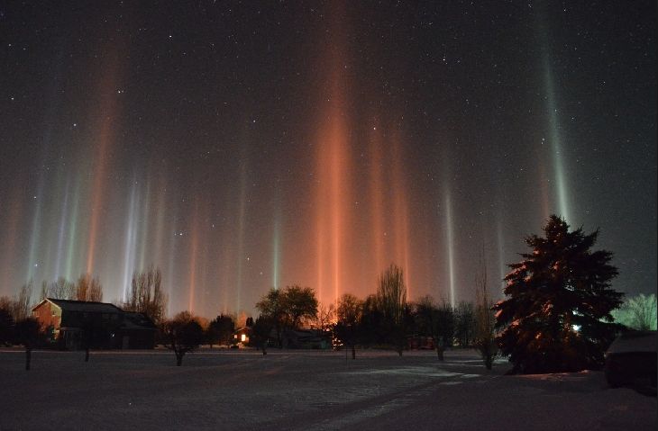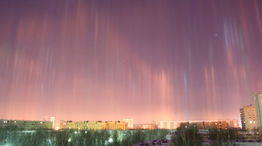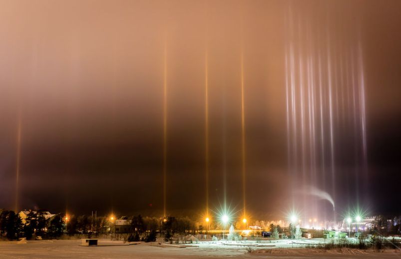 大气中形成光柱的条件其实非常严苛: 气候平和,不能有风,但气温要极低 冰晶越是靠近地表, 光柱就越是容易被肉眼所见。