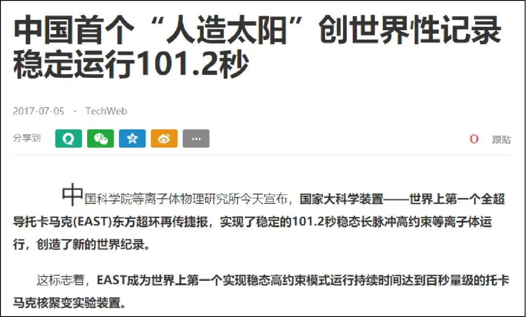 我最近查了查资料——中国政府的计划是2050年搞出可控核聚变的商用炉——这就太令人激动了!一旦实现,这大概就是中华民族对人类文明的最大的贡献。 简单的讲一下目前可控核聚变的科研进展。 可控核聚变过去是全球一票发达国家+中国俄罗斯等成立了一个ITER组织整合全世界的力量来推进这个项目的科研工作。但是这个ITER组织因为各国参与种种原因而效率低下,各种计划进度被一再拖延。 中国2006年参与ITER组织,到2016年已经是十年时间,该学的我们已经学的差不多了,考虑到我们在大型项目科研攻坚的体制优势(虽然在等离子物理等理论领域与国外还有一定的差距,但这是可以通过花钱挖人解决的),所以,2016年中国开始启动聚变工程实验堆(CFETR)的工程设计——说白一点,就是我们准备自己单干。 中国之所以有这个底气还是我们现在人才、技术储备都有,资金也敢烧,加上体制的优势,所以还是比较有把握的。 目前中国可控核聚变项目是以中科大、中科院等离子体所、585所、9院为主导,全国还有很多高校承担了部分任务。虽然有很多技术需要引进消化吸收,但是整个项目我们是有统筹时间表的——不管哪个单位在规定时间内完不成任务就直接出局。从2016年开始推进这个工作,目前几乎是每几个月我们就能出一批成果。 最新的成果是这个——世界上第一个全超导托卡马克(EAST)东方超环再传捷报,实现了稳定的101.2秒稳态长脉冲高约束等离子体运行,创造了新的世界纪录。这标志着,EAST成为世界上第一个实现稳态高约束模式运行持续时间达到百秒量级的托卡马克核聚变实验装置。