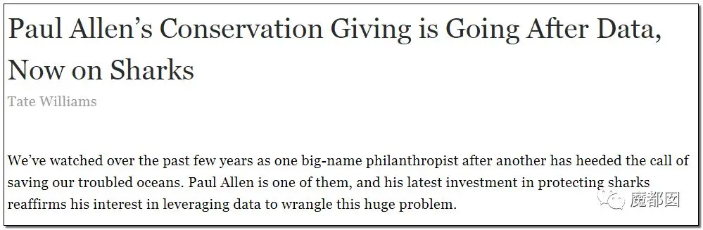 他又自掏腰包260万美元成立了有鳍鱼、鲨鱼和珊瑚的保护工作 创立了在线数据库,有效打击了全球非法捕鱼行为