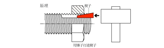“Hard Lock螺母”的构思十分简单,就是在螺母与螺丝之间揳入楔子以发挥防止松动的作用。(图1)但是,若在施工现场将楔子一一揳入要使用的螺母,则既没有效率也不现实。怎样才能使螺母具备有楔子的功能呢?若林进行了一番冥思苦想。