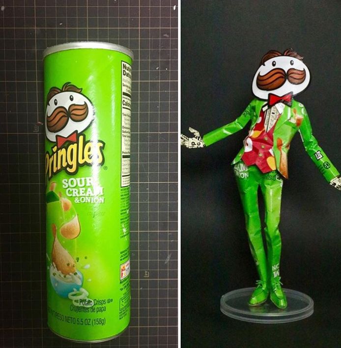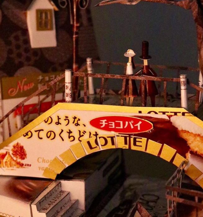 他有次吃零食的时候, 职业病犯了, 随手拿来拼贴了几下, 发现有出乎意料的效果, 于是打开了新世界的大门。