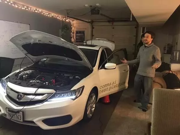 在车库捣鼓了一个月之后, 黑客小伙Geohot 终于将最新“杰作”折腾好了, 他还邀请了彭博社记者Ashlee Vance 到旧金山的家里参观。 到了车库,那里停着一辆白色的2016 Acura ILX, Geohot指着那辆车用略带炫耀的口气说: “就是它了, 我花了一个月弄出来的无人驾驶汽车。”