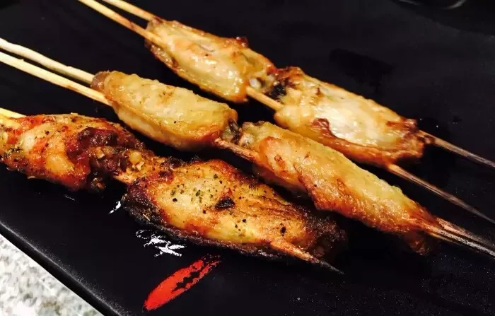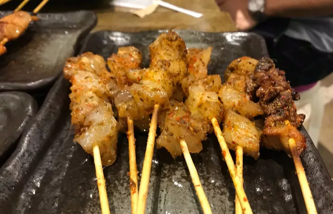 低调的Summerskill, 事先没有告知任何人, 默默地排队半小时等座, 之后,一口气吃了18串山羊串, 评论说: “有点辣,但是非常刺激,很好吃。”