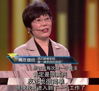 离不开她的专业: 密码学。 她是十年破译五部 顶级密码的女天才! 她解开了美国认为最安全的密码, 那可是要用大型计算机计算一百万年, 才可能破解的密码, 她的名字震动全球密码学界, 她更为我国密码领域重大需求, 解决了实际难题! 是她,让中国密码学 走在世界前列!