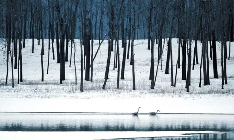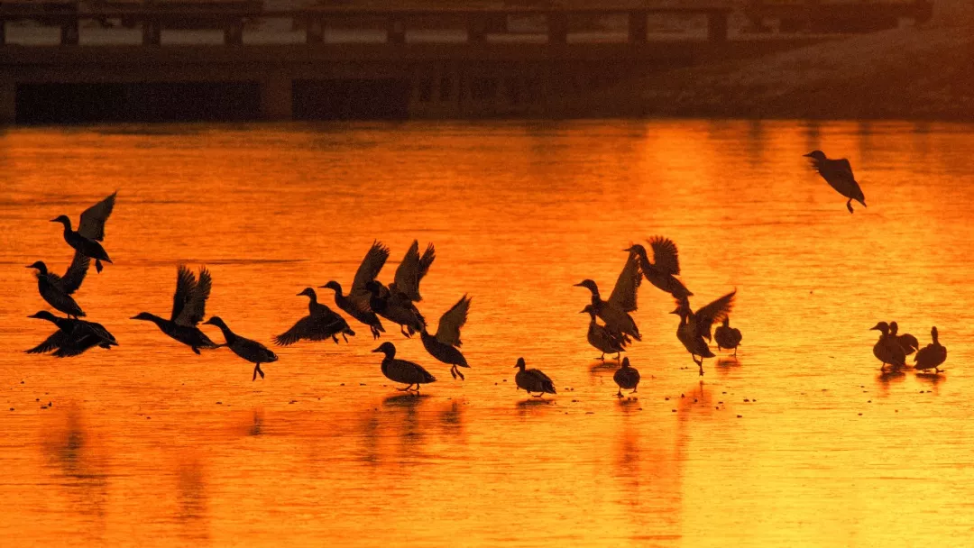 为了拍公园的水鸟过冬照, 他在严寒刺骨的冬天, 连续八天凌晨起床, 去湖边等候, 一等就是两三个小时, 从不会为了节约时间, 而故意轰赶水鸟打扰它们, 始终非常耐心地等待。